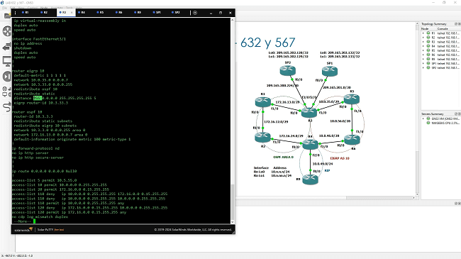 En el ejercicio 567 repetiremos la topología de red con tareas similares, pero con nuevos valores de IPs, métricas y prefijos.